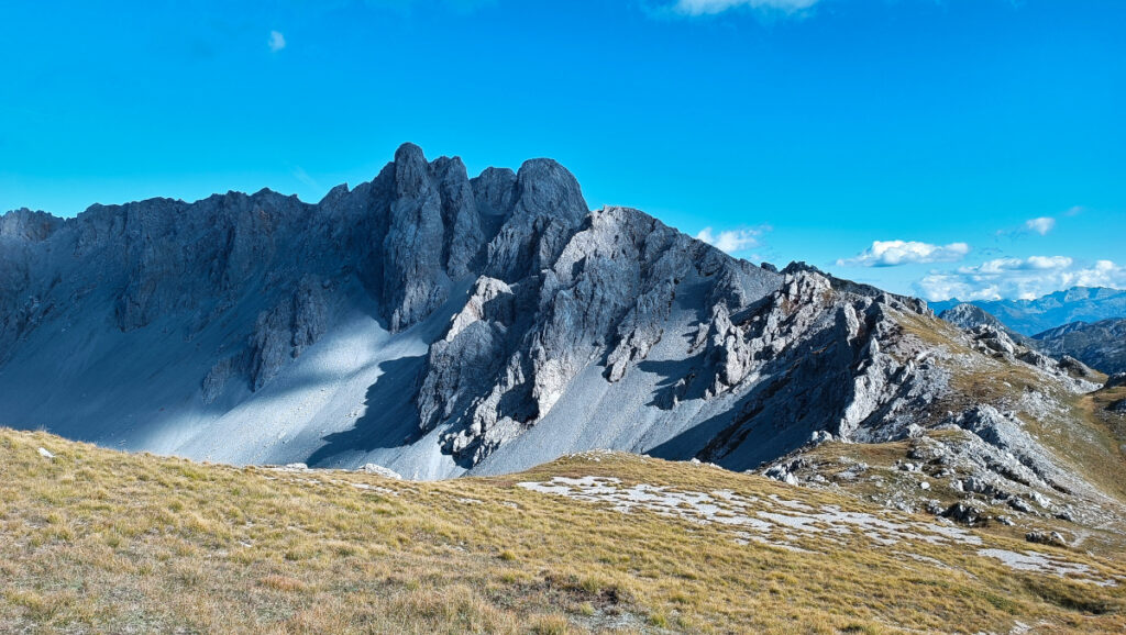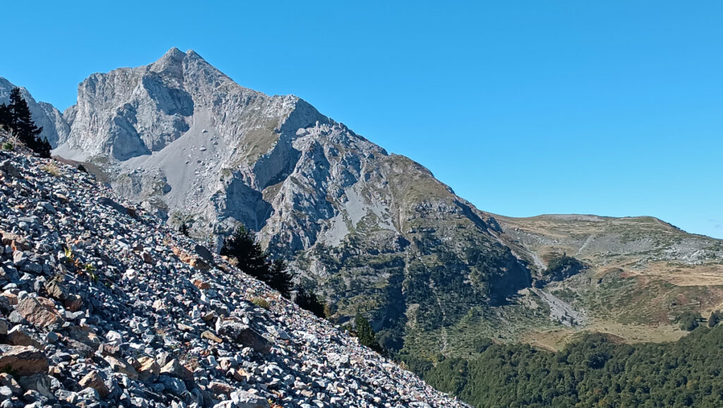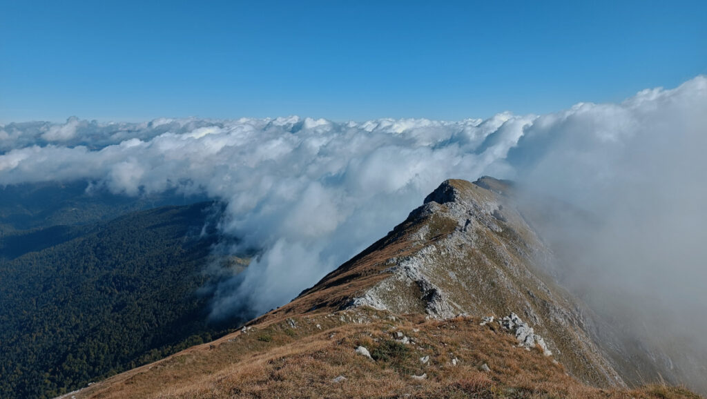 Trawersując ogromne,strome piarżyska – wychodzimy na przełęcz Provuša, stąd w prawo w górę na grań szczytową Koma Kuckiego. Końcowy odcinek szlaku, w rejonie szczytu jest trudny, eksponowany i nieco niebezpieczny. Na pewno przyda się kask, kruszyzna jest wszechobecna, musimy też pokonać 2-3 prożki.
