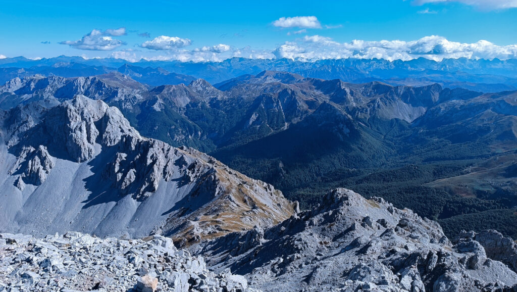 Widoki w pełni rekompensują trudy. Na horyzoncie w każdym z kierunków góry. Na południowym wschodzie moje ukochane Góry Przeklęte, na zachodzie Moracka Planina, Maganik i Sinjajevina, w oddali widać nawet Durmitor.